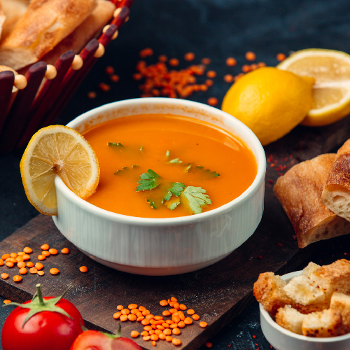 Veg clear Soup/Tomato Soup, Honey Chilli Potato, Red/White