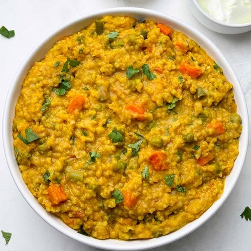 Roti, Zeera Rice/Khichadi, Dahi Bhalla, Rajbhog/Sweet Daliya.