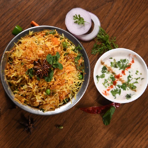 Biryani/Zeera Rice, Fruit Rayta, Green Salad