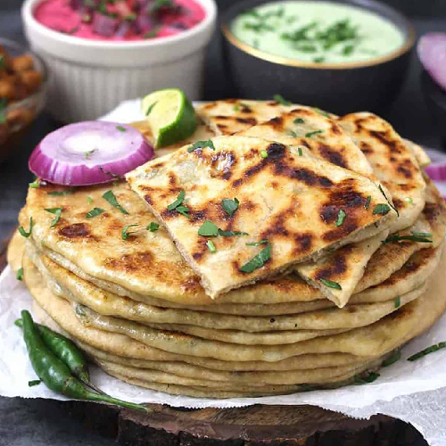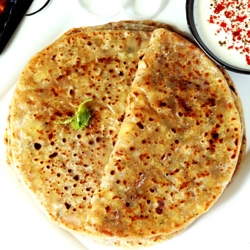Poori / Butter Naan / Tikona Paratha / Tawa Roti, Matar Pulao, Mix Rayta