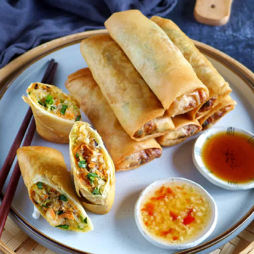 Snacks: Spring Roll, Hakka Noodles, Veg. Lung Fung Soup, Veg manchow soup, Momos,