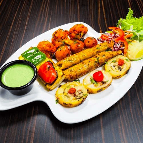 Snacks: Paneer Tikka/Mushroom Tikka, Hara Bhara Kabab, Pea-nut masala chat,